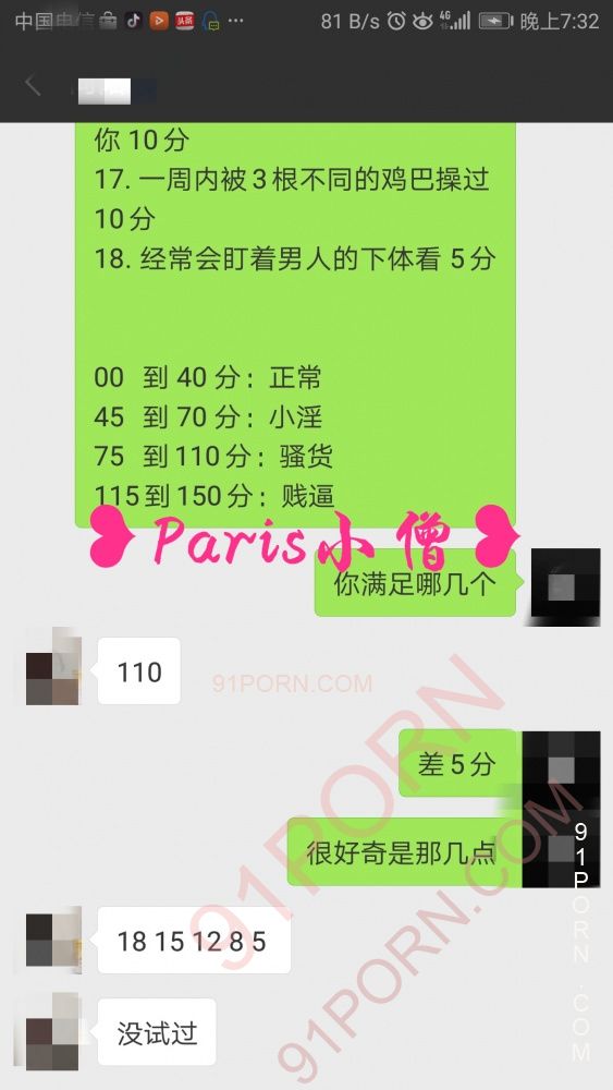 自我介绍:0576。喜欢刺激,控制,微调,轻口,偏s.声音挺温柔。网调四年多,现实有固定的,也被91大神以单男身份现实多人过。喜欢乖巧听话的骚女,放得开,玩得也舒服。自我感觉喜欢两类:一种什么都不懂的外表单纯内心有想法的“乖乖女”,一种玩的起放得开的小浪货。江浙沪附近可以加来了解下,觉得可以后期现实。