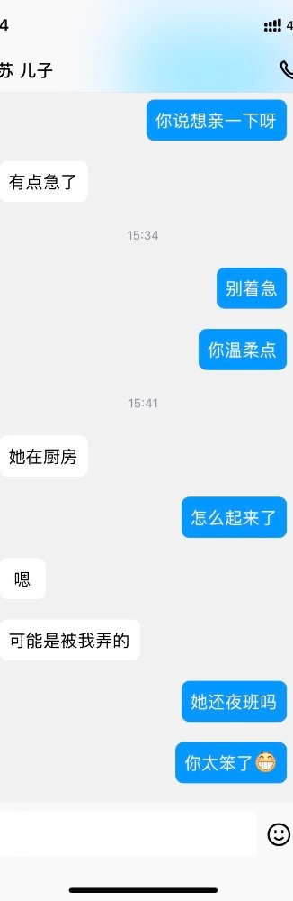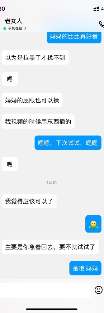 又让我付外卖的钱,我借口没付,儿子不给我报销,我也就不付出了,不过肯定影响调教的进程,其实这个环节,基本也得靠他自己努力了。今晚又给她演戏,“表弟”去我家跟我“妈”吃饭,哈,估计会发生关系。