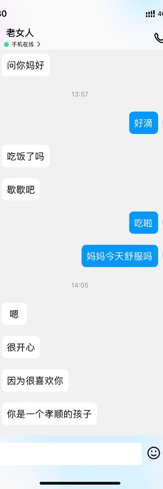 不好意思,各位,昨天后来出差,开车,到了地方又应酬,打牌,忙完两点多了。儿子摸了妈妈很久,最终还是没成,不过母子沟通了。妈妈说:以后如果他努力,除了要,其他都可以。她也会改变,只要能看到儿子改变。我把录音转成了文字
