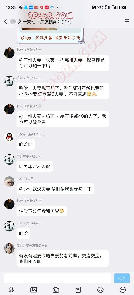 我的群是真实夫妻情侣群,为防止假夫妻情侣和嘴炮,所以验证比较严格,必须打视频验证,夫妻双方同时出视频,不用露脸,我要通过视频语音给你们夫妻双方说明换妻活动的意义,老婆同意,夫妻才能进!老婆不同意,男方就是单男!